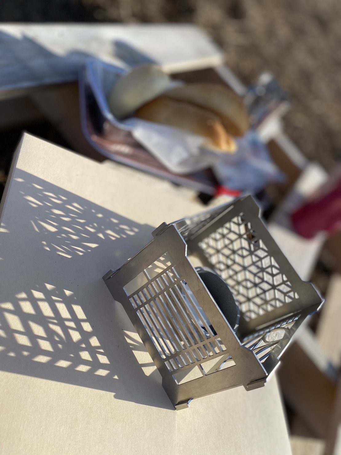 固形燃料をセットして、メスティンを乗せると五徳にもなり、ご飯を炊いたり